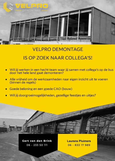 Velpro demontage is op zoek naar collega’s!